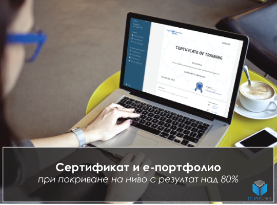 • Сертификат при успешно преминаване на цяло ниво с резултат над 80%;